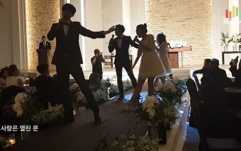 “뮤지컬 I Love You”의 대표적인 넘버로 결혼식을 준비하는 남녀의 모습을 퍼포먼스로 담아내 하객들에게 유쾌한 웃음으로 뮤지컬의 한 장면을 선보입니다.