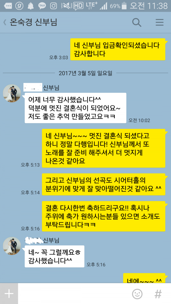 생생한 신랑 신부님들의 문자 후기들입니다.